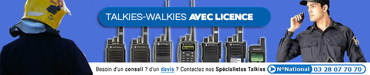 Les talkies walkies professionnels soumis à licence sont des produits fonctionnant sur des fréquences UHF ou VHF dont la puissance peut varier de 5 Watts à 1 Watt selon la bande utilisée. Leur utilisation nécessite une déclaration auprès de arcep ainsi que le paiement d'une redevance variable en fonction de la zone couverte et du nombre de talkies walkies (dont nous nous occupons entièrement sur simple demande).