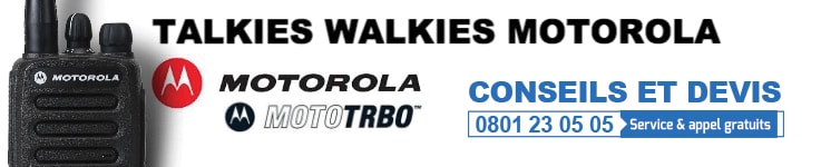 La marque Motorola est le leader mondial en matière de radiocommunications loisirs et professionnelles. Afin de promouvoir l’utilisation du talkie walkie, la société américaine a créé une large gamme d’émetteurs-récepteurs radio Motorola UHF et VHF, en PMR446 ou avec licence. Parmi les portables les plus reconnus, on retrouve le XT420, solide et fonctionnant sur la bande de fréquence gratuite PMR 446 Mhz, il dispose de la fonction mains libres Vox et offre une qualité d'émission irréprochable. Du côté des talkies walkies professionnels, le Motorola R2 est le plus récent : sa résistance et sa puissance de 5 watts en font l’outil idéal en BTP et sécurité.