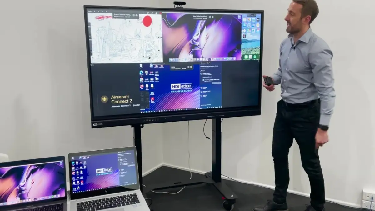 Offrant une résolution maximale Full HD et une fluidité d'image optimisée pour la vidéo, jusqu'à 8 personnes peuvent partager leur écran en même temps. La diffusion sans fil s'effectue via le Wi-Fi de votre entreprise mais un mode invité est disponible pour sécuriser l'accès des personnes extérieures. Un hotspot wifi pour la connexion des invités est généré.
