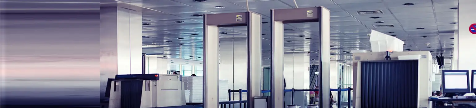 Le portique de sécurité aussi appelé "portique de détection de métaux" est un dispositif de contrôle d'accès permettant de détecter, grâce aux ondes électromagnétiques émises par le portique, des objets métalliques comme des couteaux ou des armes par exemple.