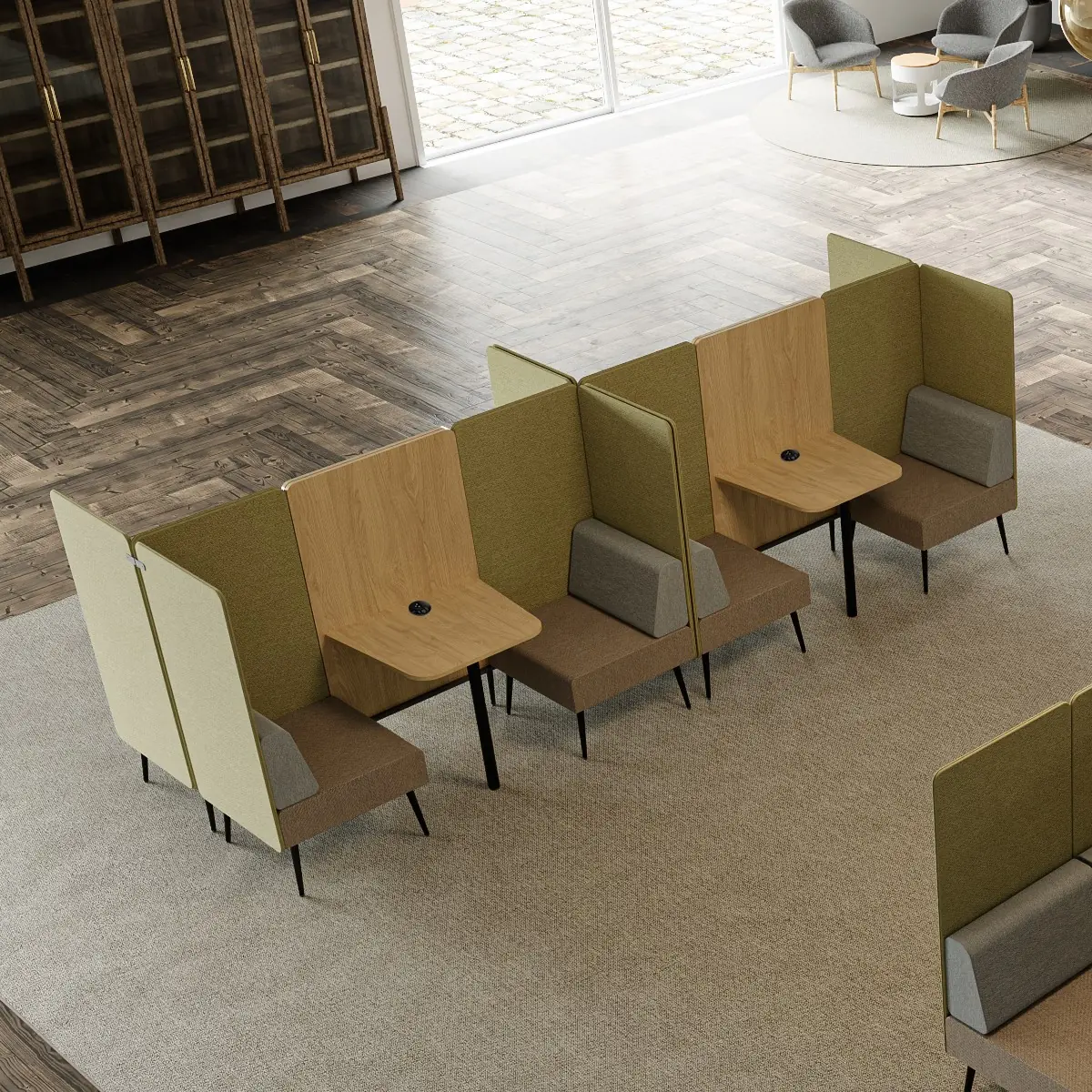 Cette alcôve est polyvalente, elle est utilisée dans plusieurs cas de figure. Pour travailler en équipe, brainstormer, se concentrer ou se détendre, elle offre beaucoup de confort à vos collaborateurs, tout en préservant leur intimité.