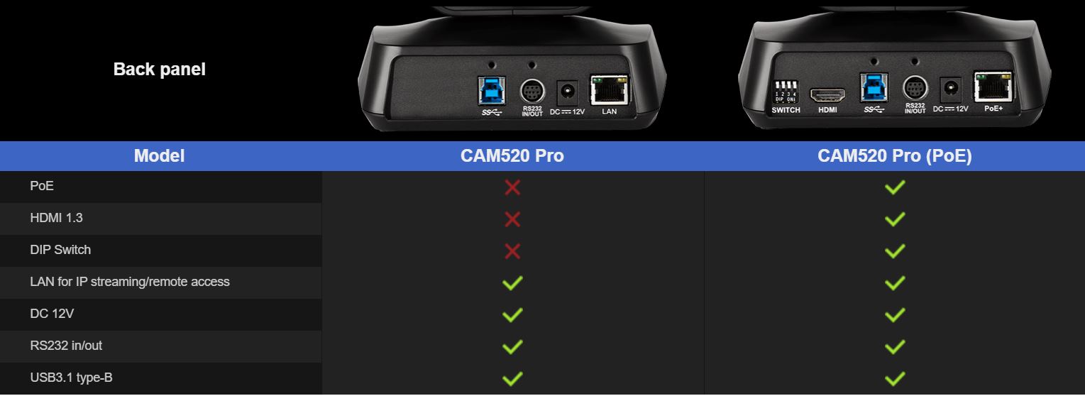 Caractéristiques de la Caméra Aver CAM520 Pro PoE