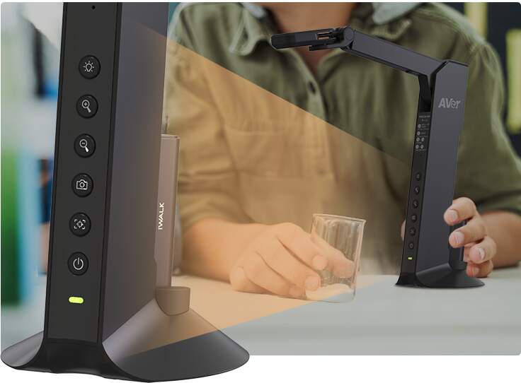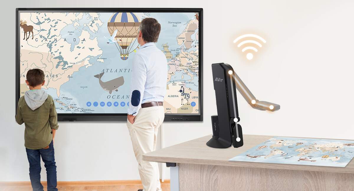 Le visualiseur sans fil AVer M11WB est conçu pour les environnements éducatifs et professionnels. Doté d'un bras mécanique, il offre une flexibilité optimale pour capturer des documents et des objets sous divers angles avec un champ de vision de 420 x 315 mm soit supérieur au format A3.