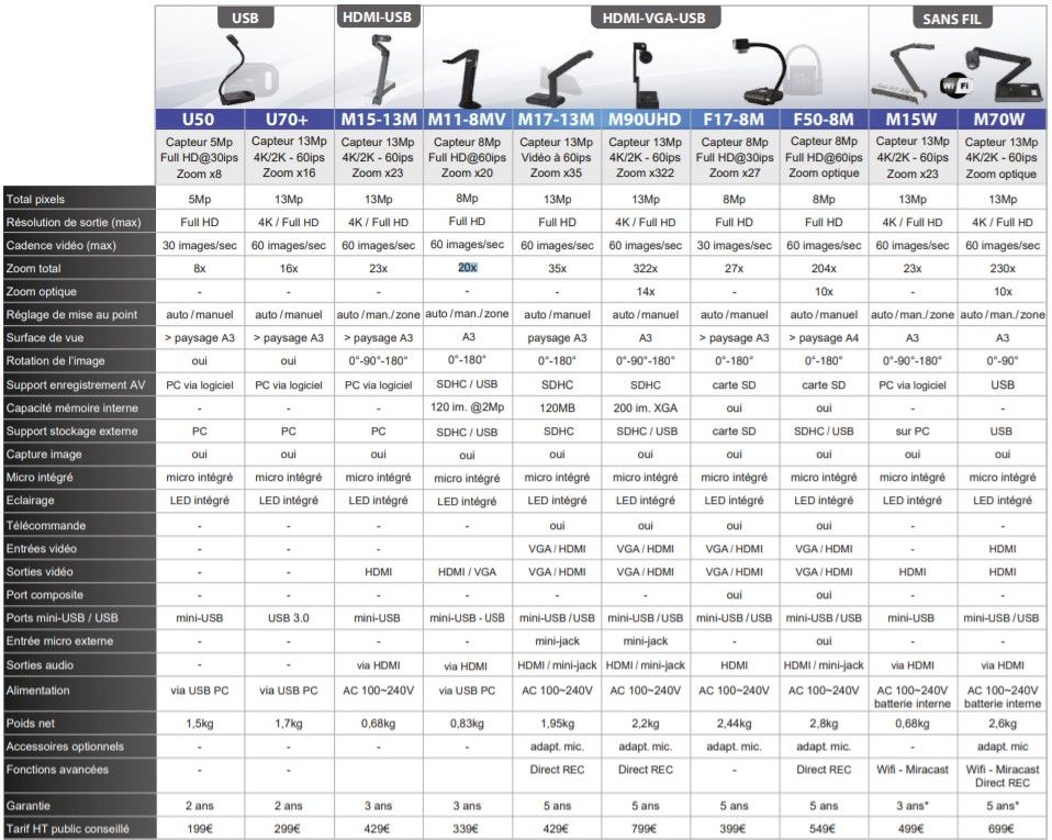 Le AVer M70W est un visualiseur de documents performant et maniable. Ce visualiseur a pour objectif de projeter des visuels aussi bien en salle de classe que lors de coq différentes réunions. Vous avez la possibilité de projeter des visuels aux différents formats. Que ces derniers soient sous format A3 ou des objets en 3D, le visualiseur les retransmet dans une superbe qualité UHD 4K. Le AVer M70W offre précision et haute qualité d'image. Cette résolution permet de favoriser la compréhension des documents aux élèves. Zoomer sur les différents points clés de votre support grâce au zoom total x230. Le capteur 13 Mpx et le zoom optique x10 permettent d'afficher l'ensemble des détails, tout en conservant une belle qualité d'image.