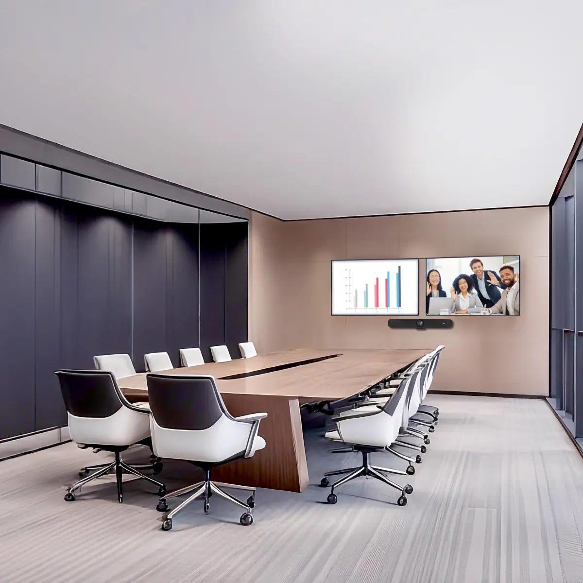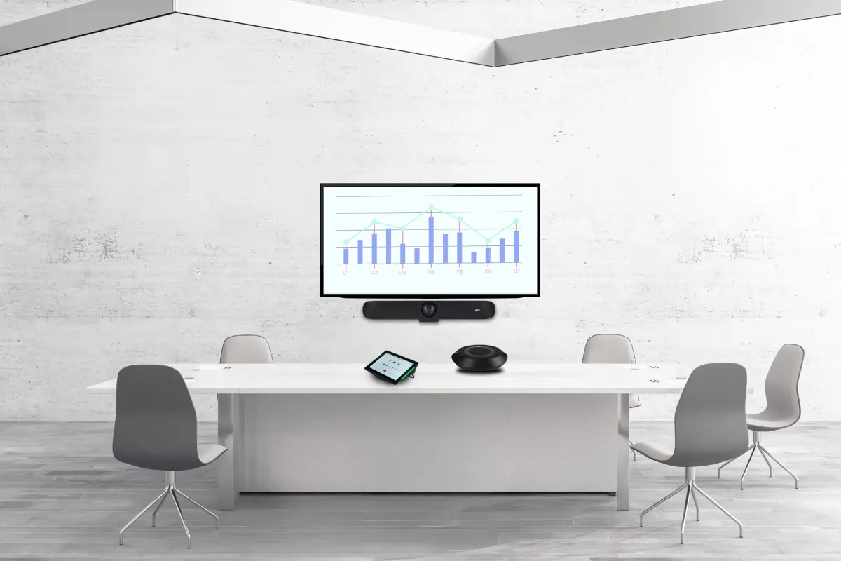 AVer VB370A est une barre de visioconférence avec caméra, microphones et haut-parleurs intégrés, spécialement conçue pour couvrir les besoins d'une grande salle. Alimentée par Android 13, elle intègre nativement l'application Zoom. De cette manière, en souscrivant à une licence Zoom Rooms, les utilisateurs bénéficient d'une expérience immersive sur cette plateforme : les réunions sont rejointes en un clic depuis la tablette de contrôle (vendue en option) et ne nécessitent pas l'utilisation d'un ordinateur portabel hôte.