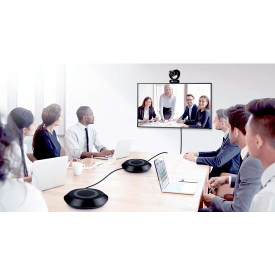 Simple d'installation, l'enceinte de conférence se connecte directement sur la caméra. Quant aux speakerphones d'extension, il se branchent sur l'enceinte principale (en chaîne). Système Plug & Play, il ne vous reste qu'à relier la caméra à votre ordinateur via un câble USB-A pour récupérer la gestion de l'ensemble des périphériques. Vous pouvez alors lancer une visioconférence depuis n'importe quelle plateforme de communication, comme Microsoft Teams, Google Meet ou Zoom.