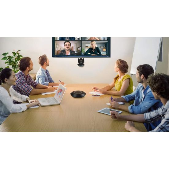 Plug & Play, la caméra se connecte en USB sur un PC, un Mac ou un Chromebook. Pour l'alimentation, il est possible de brancher la CAM550 sur le secteur, ou au réseau Ethernet par PoE+. Cette solution vous permet de gérer manuellement les déplacements de la caméra depuis une interface web et de réaliser des mises à jour, et autres actions de management, à distance et de façon centralisée. Pour cela, il vous faudra télécharger le logiciel EZManager 2. Le speakerphone, quant à lui, peut se brancher en USB ou s'utiliser sans fil, en Bluetooth. Il s'alimente sur secteur.