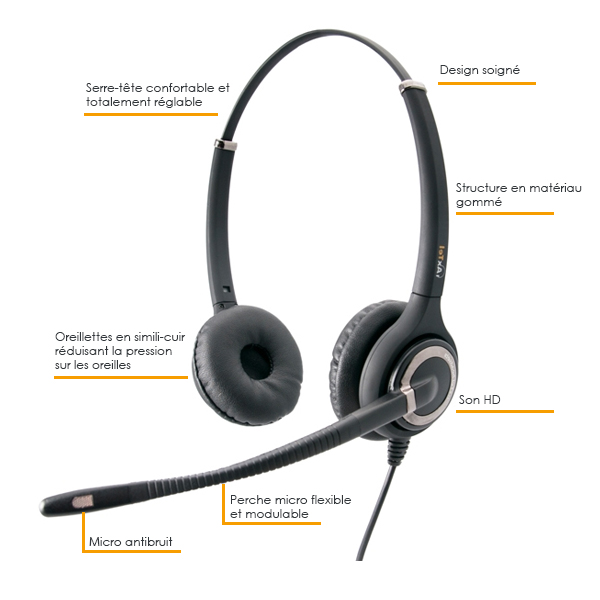 Casque téléphonique filaire 2 écouteurs Axtel Elite HDvoice Duo