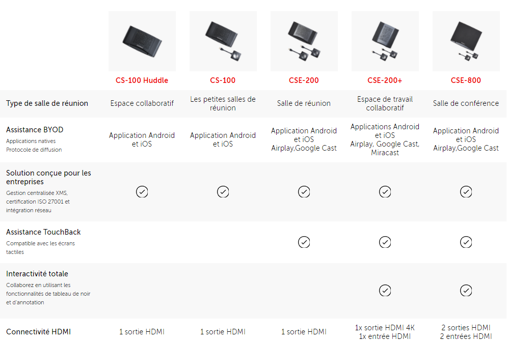 - Compatibilité iPad, iPhone et Android : Partage de documents, navigateur, caméra pour les appareils Android et iOS via l’app ClickShare