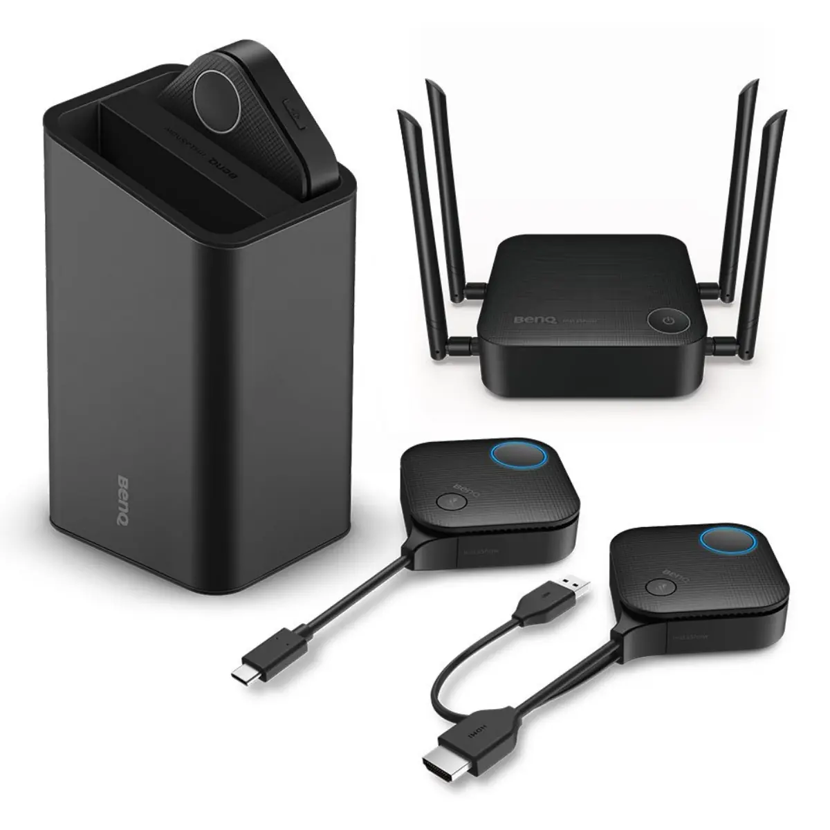 Le BenQ Instashow VS20 est un système de présentation sans fil qui prend en charge le BYOM (Bring Your Own Meeting) dans votre organisation. Simple à utiliser, il vous offre la possibilité de faire du partage d'écran et de la visioconférence sans fil. Le système BenQ est composé d'un récepteur, appelé Host, de deux boutons émetteurs et d'une station d'accueil pour le rangement des boutons.