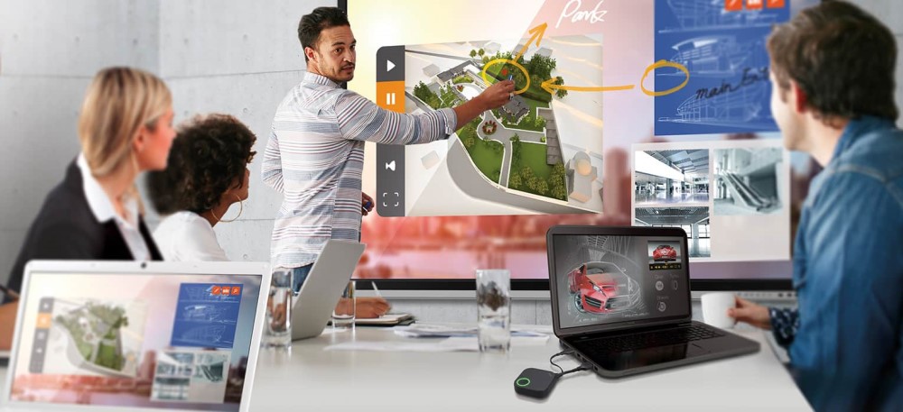 Conçus pour faciliter le partage de contenu lors de réunions, les systèmes de présentations sans fil InstaShow de BenQ sont simples d’utilisation. Branchez le bouton à votre ordinateur et en quelques secondes vous êtes liés à l’écran ou au vidéoprojecteur de votre salle de réunion. Vous pouvez alors, en une pression, partager votre écran et commencer votre présentation.