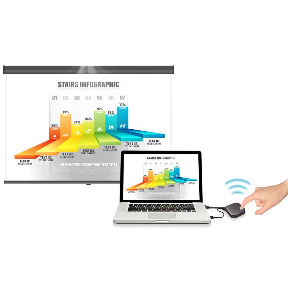 Vous n’avez aucun logiciel à installer et aucune configuration à faire. Une fois le bouton appairé au récepteur, vous pouvez lancer le partage depuis votre PC, MAC ou Chromebook, et plus largement depuis tout appareil doté d’un port HDMI 1.4.