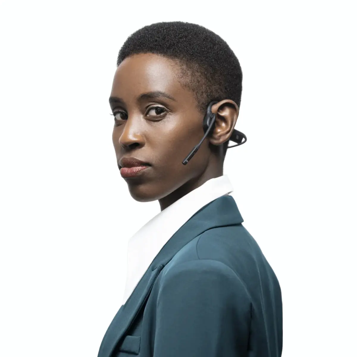 OpenComm est le tout premier casque Bluetooth conçu pour la communication qui combine une technologie de conduction osseuse et un microphone à perche double anti-bruit DSP.