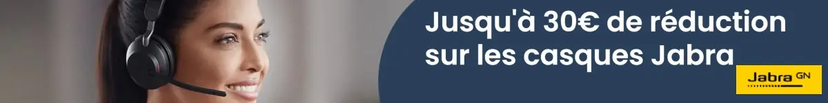 La gamme Jabra, c'est également des périphériques audio équipés de micro performants et avec la dernière génération de réduction de bruit. Dans un contexte de flex office et de travail à distance, les logiciels de softphonie (téléphonie par internet) et de visioconférence se développent à grande vitesse. Jabra avec sa gamme de casque audio pro Evolve s'adapte rapidement, et est capable de proposer des versions performantes avec des dongles Bluetooth qui se connectent rapidement. La gamme de produits Evolve 65 et 75 est parfaitement adaptée à cette nouvelle méthode de travail. Entre bureau et maison, emportez votre casque partout, profitez d'une autonomie longue durée et d'une multi-connexion Bluetooth Smartphone-PC permettant de jongler entre appels téléphoniques et visioconférences. Disposant de compatibilité avec de nombreux logiciels et parfois d'optimisations pour Microsoft Teams, la gamme Bluetooth professionnelle Jabra vous assure un fonctionnement parfait dans de nombreux environnements. Léger, ils sont également parfaits pour un port longue durée.