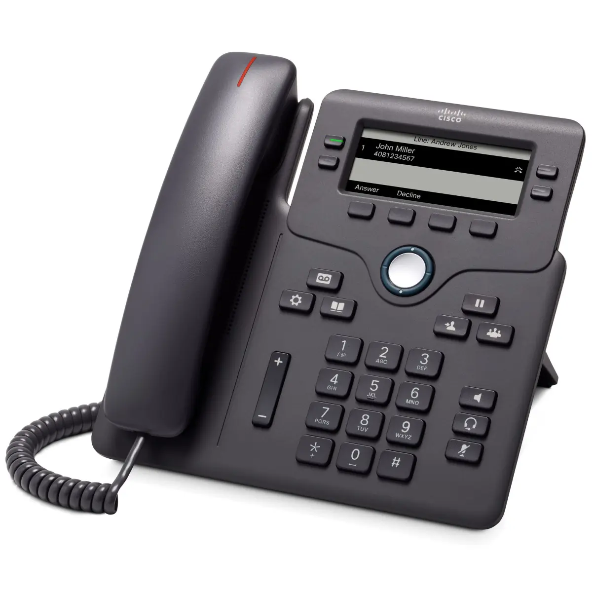 Son écran noir et blanc de 3.5" permet de lire facilement votre répertoire, et la navigation grâce aux 4 touches est parfaitement accessible. Grâce à la VoIP, le Cisco 6841 permet d'accéder à de nombreuses fonctionnalités de la téléphonie professionnelle : transférez, mettez en attente ou encore renvoyez automatiquement vos appels.