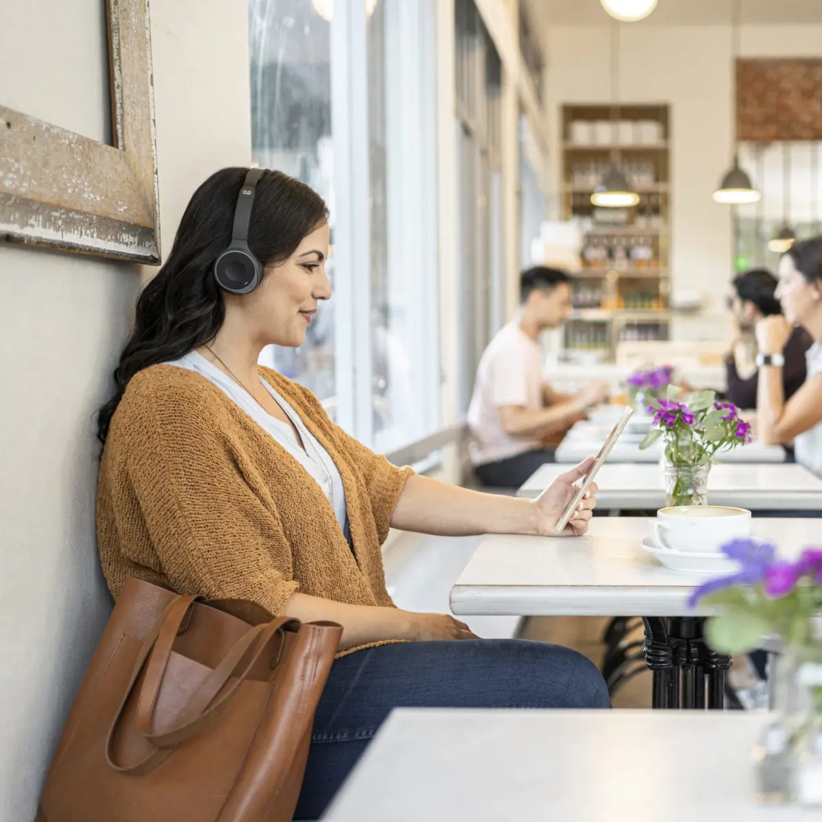 Il bénéficie d’une technologie d'affûtage de la voix, même sans perche, grâce à ses micros de haute performance intégrés dans les oreillettes du casque. Ils permettent d’annuler les voix autour de vous, de supprimer le bruit en arrière-plan et de s'adapter aux changements d’environnement des travailleurs hybrides afin d'avoir une meilleure transmission de la voix. La suppression de bruit en arrière-plan s’ajuste automatiquement en fonction de l’environnement : plus ou moins bruyant. Le micro casque a également une protection contre les chocs acoustiques supérieurs à 118 dB.