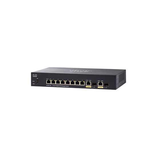 Le switch Cisco SG350-10 est une solution réseau idéale pour les TPE-PME. Il offre 8 ports Gigabit 10/100/1000 + 2 ports mini-GBIC combinés** (pour module optionnel) et assure les fonctionnalités avancées de sécurité et de réseau requises pour prendre en charge l'ensemble des technologies : données, voix, sécurité, sans fil.