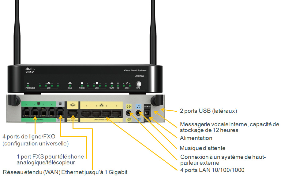 Le Cisco UC320W fonctionne avec les téléphones IP Cisco séries SPA 300 et 500 et dispose d'un sytème de configuration facile via son interface web.