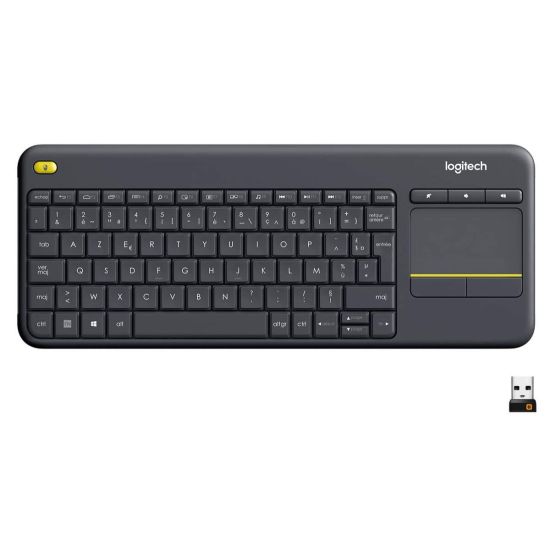 Le Logitech K400 intègre un clavier ainsi qu'un pavé tactile (également appelé trackpad) pour simplifier la navigation. Vous n'avez alors besoin de connecter qu'un seul et unique dispositif pour utiliser clavier-souris en simultané.
