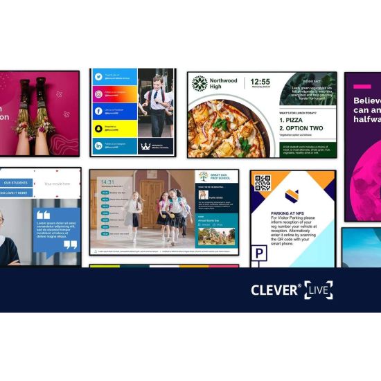 La solution d'affichage dynamique CleverLive est directement intégrée dans l'ensemble des écrans de la marque Clevertouch. Celle-ci a l'avantage de ne pas générer de coût supplémentaire pour les entreprises qui souhaitent diffuser des contenus dynamiques puisqu'elle est totalement gratuite.