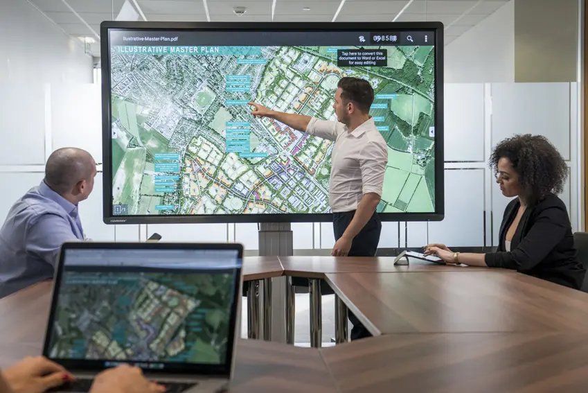 - Un écran de très belle qualité avec une résolution UHD 4k et une luminosité pour être disposée dans n’importe quelle Huddle room.