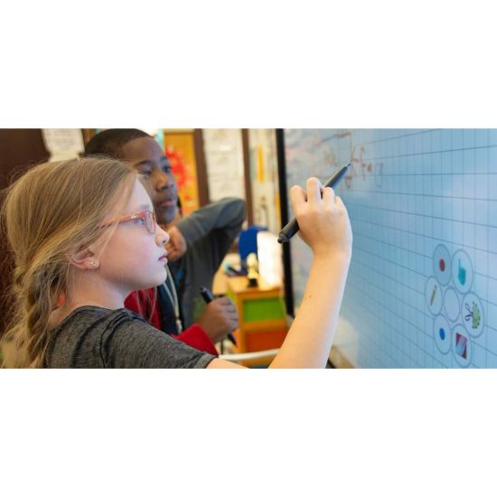 Sur ce paperboard numérique, prenez des notes, réalisez des schémas, dessinez, ... de façon très fluide. Utilisé seul ou à plusieurs, cet appareil vous permettra de donner vie à de nombreux projets ! Grâce à la fonction Multi-Touch intégrée, le tableau interactif est en mesure de reconnaître jusqu’à 50 points de contact en simultané, permettant ainsi à plusieurs élèves d’interagir en même temps. Pour faciliter l'enregistrement des notes à la fin du cours, un QR Code est mis à disposition.