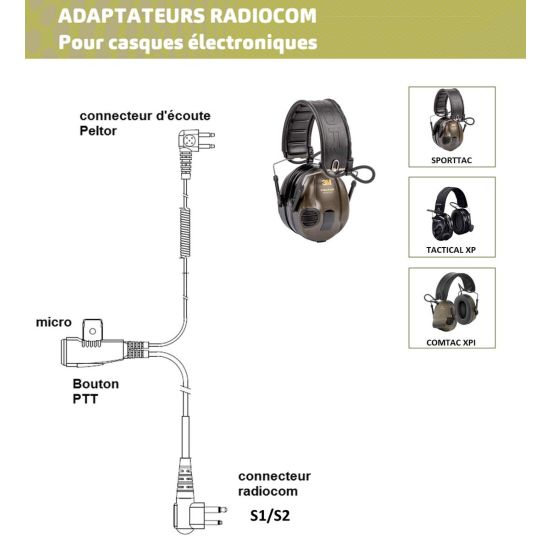 Cordon pour casque 3M Peltor (SportTac, ...) vers talkies Midland G9 Pro, G7 Pro et séries XT