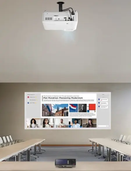 • Connectivité sans fil : Wi-Fi ou Bluetooth pour des présentations fluides depuis un ordinateur ou un smartphone.
