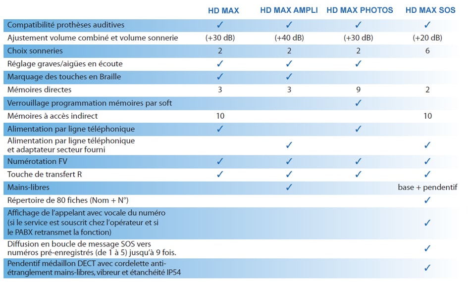 Le volume du téléphone Depaepe HD Max peut être amplifié jusqu'à +20 dB, son écran rétro-éclairé permet d'identifier l'appelant et 2 touches mémoires directes ainsi qu'une touche SOS permettent l’appel d’urgence à partir de la base.