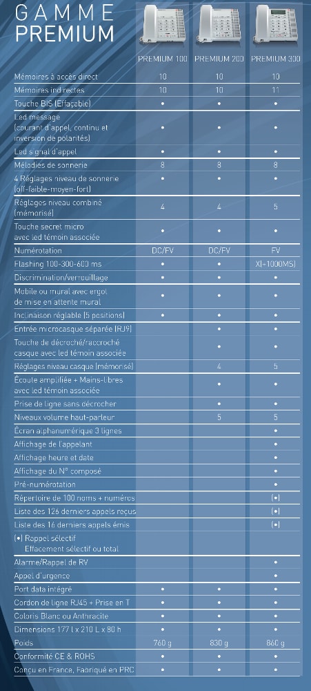 Caractéristiques du poste téléphonique Depaepe Premium 300 :