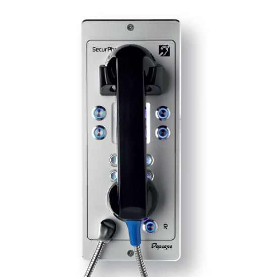 - Sécurité : le poste SecurPhone est équipé de vis antivol, d'un clavier anti-vandale, d'un cordon armé résistant anti-arrachage et d'un combiné indémontable.
