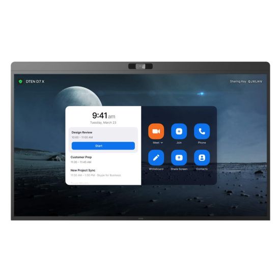 Ecran pour visioconférence UHD 4K de 55 pouces, le DTEN D7X intègre un système d'exploitation Android pour un paramétrage en Zoom Rooms ou Microsoft Teams Rooms. Tout-en-un, il se dote d'une caméra, de 15 microphones et de 2 puissants haut-parleurs. Ainsi, en un seul élément, vous disposez de tout le nécessaire pour aménager une petite ou moyenne salle de réunion.