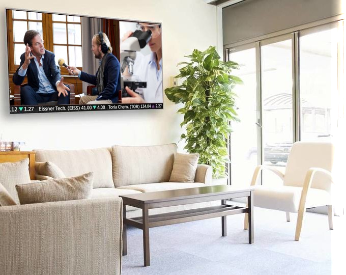 Nos packs d’affichage dynamique conviennent aussi à la digitalisation d’un espace d’attente ou d’un hall d’accueil. Les écrans SMART Business TV de la série Samsung BET ont la particularité de diffuser la TV tout en y ajoutant vos messages à l’attention du public ou de votre patientèle : délai d’attente, météo, numéro de service client, date & heure… Vous pouvez ainsi afficher des informations importante, divertir votre salle d’attente avec des clips musicaux ou du sport, ou informer en diffusant des chaines d’info en continu. Vous pouvez utiliser le sport comme outil de communication fédérateur pour gagner en visibilité, en diffusant un match et en y accolant le logo de votre enseigne .