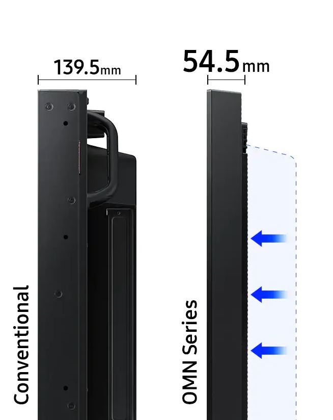De plus de ses performances d'affichages dynamiques, l'écran OM55N consomme moins d'énergie pour une meilleure efficacité.