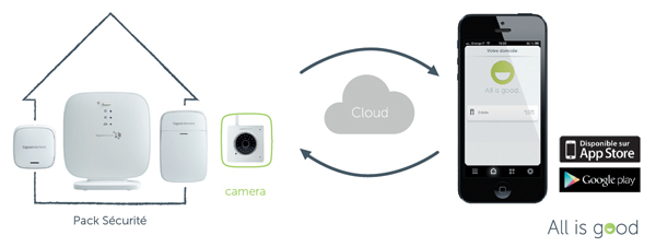 3- L’utilisateur peut à tout moment consulter le flux vidéo en temps réel via l’application gratuite Gigaset elements (Android 2.3 et version ultérieures, iOS à partir des modèles 3GS).