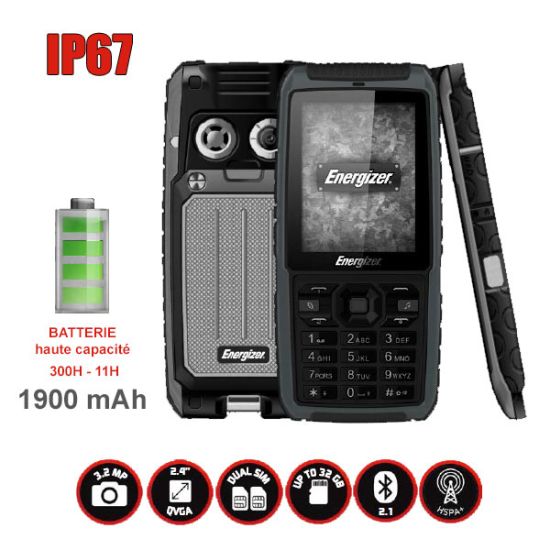 J'ai testé ce téléphone 2 semaines...Quel dommage, voila un très bon téléphone, très mal programmé !!!Coté matériel :Le téléphone est robuste, très léger et semble tenir ces promesses de téléphone "solide" et étanche (enfin je l'ai fait chuter et tremper quelques fois sans abuser non plus mais il rebondi bien). Pas de soucis pour écouter de la musique sous la douche, le volume du HP (Haut Parleur) est puissant et la qualité très acceptable, un plaisir en situation bruyante.-> IMPORTANT, la réception est très bonne malgré le DAS extrêmement faible (de mémoire, 0,160Kw/gr annoncé, un record! c'est un des critère phare de ce téléphone d'après moi pour un des rare tel 3G solide - évitez la 2G - technologie bcp plus nocive!). L’écran par contre se raye facilement (apparemment normal pour un écran qui ne se casse pas facilement), prévoir un film de protection (ça coute moins de 3€). Mais il est très lumineux et très grand pour un téléphone non tactile.L'appareil photo, en revanche, est très décevant et il y un un long délais entre l’appuie et la prise de photo (~3sec)... Pour regarder sur le tel, c'est très bon, si non, ne comptez pas utiliser les photos sur PC, sauf en dépannage !Coté AUTONOMIE, c'est très bon, 4h45 de communications (souvent avec le HP) en une semaine, sachant que j’éteins le tel la nuit mais utilise le réveil. Donc dure de savoir exactement, mais la 1ere charge a tenu exactement une semaine.A oui, contrairement à son petit frere le Energy 200, pas de radio sans écouteurs (et après un petit test, la réception était décevante).La torche est suffisamment puissante mais...Coté logiciel... Quelle déception, on vois que Energizer n'est pas spécialiste...Pour allumer la torche, rdv dans les menu, après 3 cliques, on peut allumer, idem pour éteindre... Super pas pratique !!!Pas de saisie intuitive dans les messages (pas de T9) et, pour naviguer entre minuscule et maj, obligé de passer toutes les langues (une 10aine!), une aberration ! Si vous lancer un MP3 depuis le fichier, impossible de faire des réglages (ni volume ni rien!), obligé de passer par le lecteur audio, lui aussi incompréhensible : on dirait bien qu'ils ont utilisés la version tactile pour (mal) l'adapté à un téléphone à touche. Il faut donc deviner ou se trouve sur le clavier chaque bouton affichés à l'écran, et certain n'ont aucune correspondance avec le clavier (donc une partie des fonctions affichée à l'écran sont inaccessibles). Et il recharge tout les fichiers du dossier "audio" à chaque démarrage du lecteur... Par contre, une touche clavier est dédiée à l'ouverture du logiciel audio (qui reste actif en tache de font, donc pratique de pouvoir ouvrir le lecteur d'un seul bouton). Quoi d'autre?... Pas d'affichage de l'heure pendant une conversation, impossible de se connecter en HTTPS avec le WAP (oubliez gmail par exemple, mais ce tel n'est pas fait pour aller sur le net me direz vous, enfin ça dépanne parfois!). Vous en voulez encore ? De déception en déception !Si vous souhaitez utiliser des images pour les appelants ou en fond / veille etc... vous allez devoir réduire au max la qualité, car la taille maxi est vraiment petite, une galère de plus... Et jamais compris comment modifier une photos (pivoter par exemple!!!) Pour copier des fichiers, il faut se casser la tête avant de trouver l'option.Lors d'un appel, la fonction HP change de place selon les cas, parfois facile d'accès, parfois en plusieurs cliques; Impossible de mettre le tel en silencieux lors d'un appel entrant (obligé de renvoyer sur messagerie pour couper la sonnerie)...Coté réglages, vous avez droit au minimum syndicale...Bref, toutes ces petites choses qui rendent un téléphone agréable et pratique sont quasi inexistantes... Franchement, les ingénieurs doivent utiliser des smartphone depuis longtemps, parce que les nokia des 1ères années étaient bien mieux pensés !!!Coté application, le stricte minimum...Donc bon, voila un téléphone qui pourrait être PARFAIT (excepter l'appareil photo), mais qui, à cause du système d’exploitation mal pensé, devient très désagréable à utiliser - en tout cas pour moi. Espérons que des versions viendrons corriger le tir dans quelques temps, mais j'en doute... Dommage, car un téléphone SOLIDE avec moins de 200mW/gr de DAS en 3G je n'en connais pas d'autres...En plus étanche et léger, avec une bonne autonomie et un bon HP... Rahhh quel dommage, pour quelques bêtises de conception logiciel il devient médiocre, ou presque... Car finalement, le plus important est à définir pour chacun de nous...C'est sur que Solide, étanche, bonne réception et bonne autonomie, avec un DAS si faible, c'est juste une première en 3G... Ca vaut bien les 3 étoiles...Moi, après 2semaines d’hésitation, j'ai renvoyé le mien...En espérant avoir été utile, à vous de décider ;)