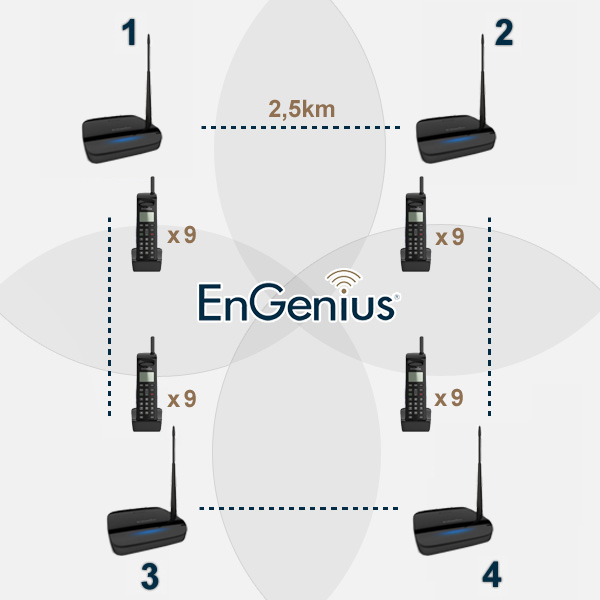 S'équiper du téléphone sans fil longue portée Engénius EP802 est une alternative plus économique que la mise en place d'un système de bornes DECT derrière un central téléphonique et plus interessante techniquement que l'utilisation de talkies walkies car l'Engénius EP802 offre un accès direct à vos lignes téléphoniques extérieures.