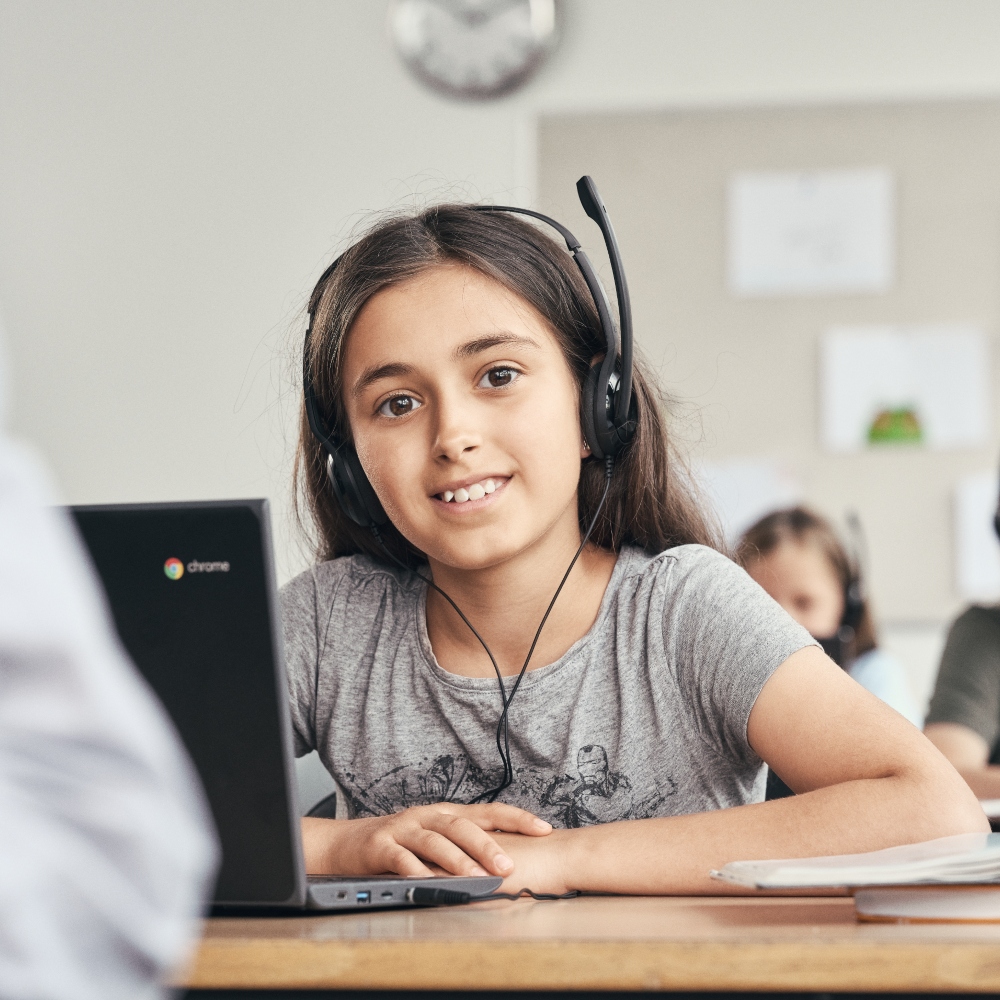 Le poids léger du casque permet d'être porté tout au long de la journée sans ressentir d'inconfort. Toujours dans une volonté de confort pour les élèves, la perche micro ainsi que le bandeau sont ajustables selon les besoins limitant les perturbations. Vous pouvez suivre un cours sans être perturbé !