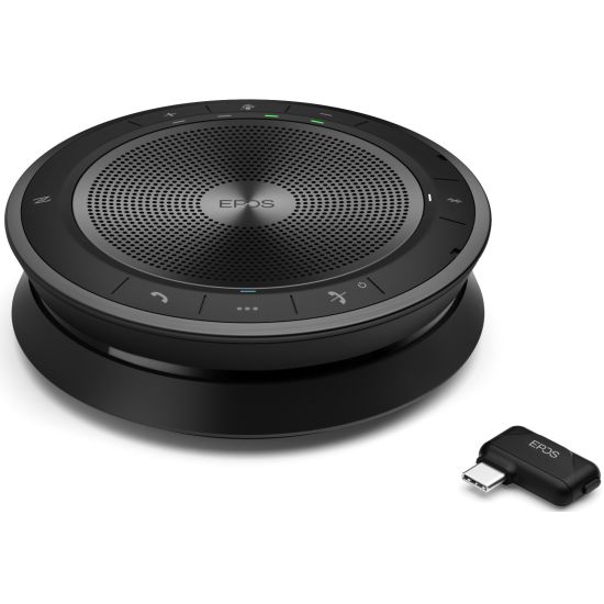 Le Epos Expand 40+ est la toute dernière nouveauté speakerphone de la famille expand de chez Epos. Plug&Play en USB-C mais aussi Bluetooth. Ce speakerphone s'adapte à l'ensemble de vos appareils. Si votre appareil ne dispose pas de connectique USB-C, un adaptateur USB-A est fourni. L'objectif est de permettre une connectivité peu importe l'appareil que vous utilisez ! Un dongle USB-C est également fourni avec cette enceinte de conférence afin de vous faire bénéficier de l'utilisation sans fil même avec vos appareils qui ne disposent pas de la technologie Bluetooth.