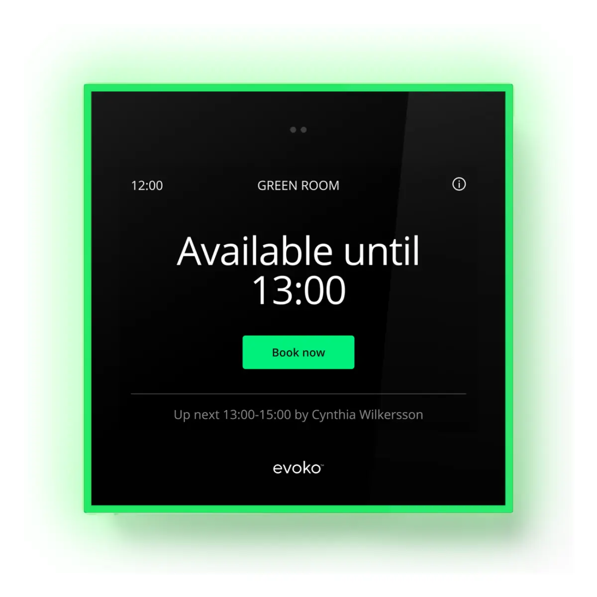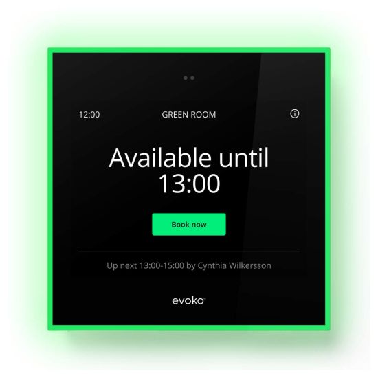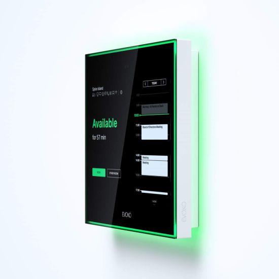 Evoko Naso est un écran tactile de réservation de salle de 8 pouces. À placer à l'entrée d'une salle de réunion, il informe les collaborateurs sur la disponibilité de l'espace. Le code couleur intuitif facilite, au premier coup d''œil, la visualisation de la disponibilité de la salle. Le statut de réservation est visible de loin, et de côté, grâce au système d'éclairage LED.