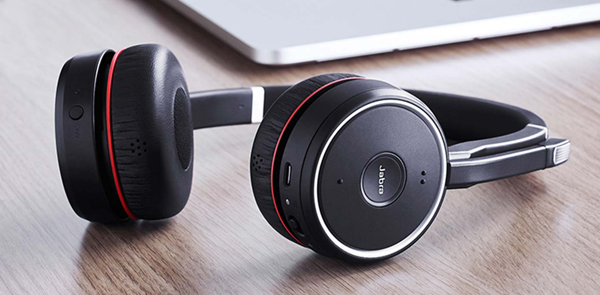 Découvrez sans tarder le casque Evolve 75 Duo USB de Jabra, livré ici avec son support de charge pour un rangement aisé et l'assurance de ne jamais tomber en panne de batterie.
