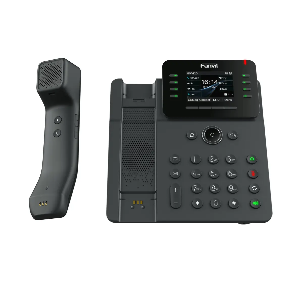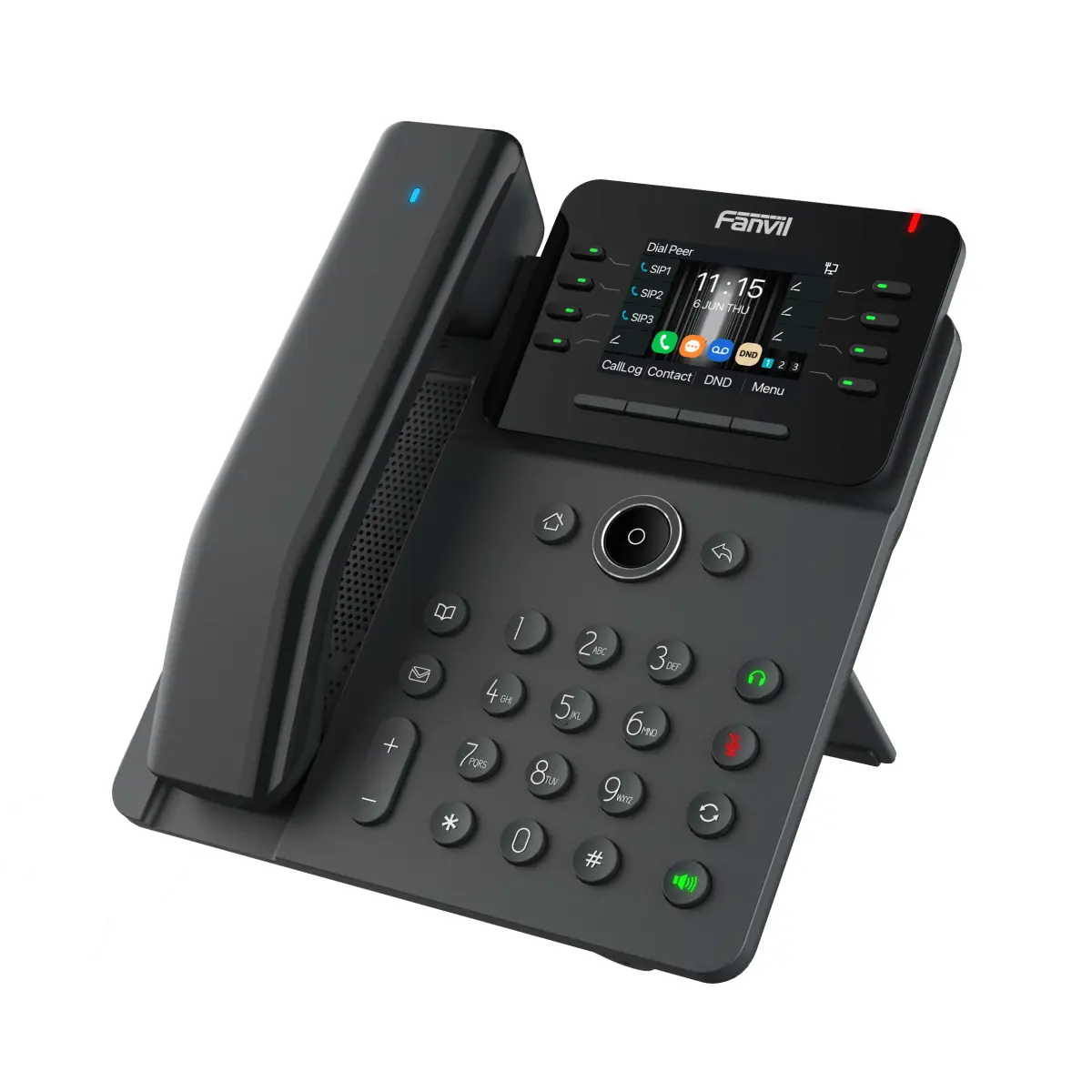 Le Fanvil V62Pro est un téléphone IP haut de gamme conçu pour répondre aux besoins des environnements professionnels exigeants. Avec un écran couleur HD de 2,8 pouces et la prise en charge de 12 lignes SIP, ce modèle offre une interface fluide et une gestion des appels simplifiée. Il intègre une audio HD grâce aux codecs G.722 et Opus, assurant une qualité sonore supérieure en mode combiné ou haut-parleur.