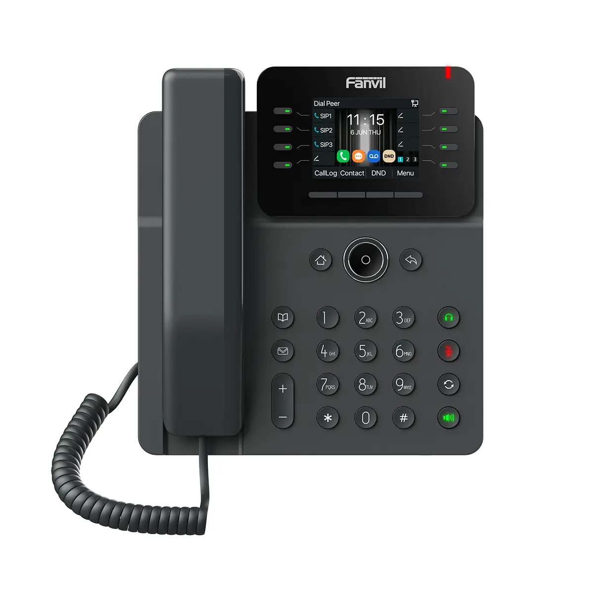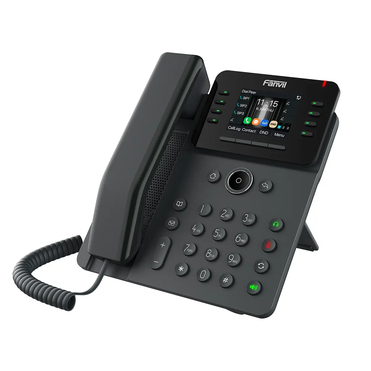 Le Fanvil V62G est un téléphone IP d'entrée de gamme. Doté d’un écran couleur de 2,8 pouces (320x240), il offre une interface utilisateur simple. Ce modèle prend en charge jusqu’à 12 lignes SIP, ce qui permet de gérer plusieurs appels simultanément. Il intègre l’audio HD avec prise en charge des codecs G.722 et Opus, garantissant une clarté sonore, tant sur le combiné que via le haut-parleur mains libres. Le V62G dispose de deux ports réseau Gigabit avec alimentation PoE intégrée, assurant une connexion stable et rapide tout en simplifiant l’installation car il nécessite que d'un seul câble. Il propose jusqu’à 21 touches DSS programmables (ligne, BLF, numérotation rapide), utiles pour personnaliser l’usage selon les besoins de chaque utilisateur.