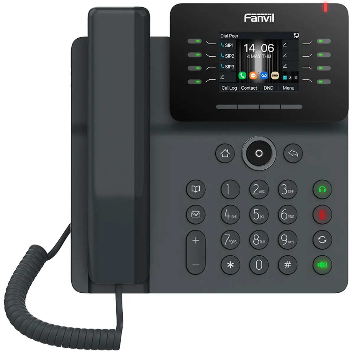 Le nouveau téléphone VoIP Fanvil V63 rassemble tous les éléments pour s'intégrer parfaitement dans les systèmes téléphoniques VoIP des PME. Petit et doté d'un design élégant, il est équipé d'un écran couleur de 2.8" (soit environ 7 cm de diagonale) facilitant la lisibilité et la navigation dans les menus. Ne soyez plus dérangé lors de vos appels grâce au témoin lumineux LED.