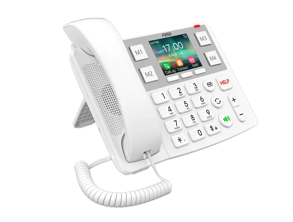 Le Fanvil X305 est un téléphone IP SIP qui prend en charge jusqu'à 2 comptes SIP, permettant une gestion efficace des communications. Équipé de 4 touches programmables avec photos, il offre un accès rapide aux numéros les plus utilisés. Les touches sont larges et en braille pour faciliter la numérotation.