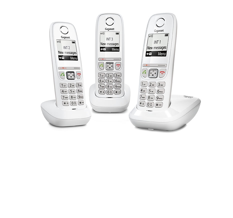 La version Gigaset AS470 Trio vous propose 3 téléphones sans fils blanc dotés de la technologie DECT.