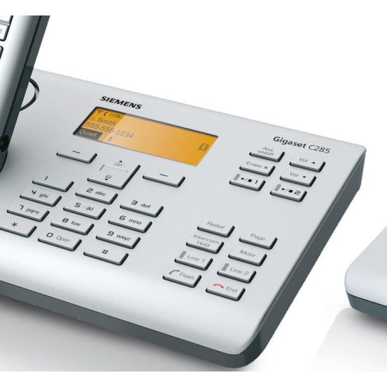 Le Gigaset C285 est évolutif et peut recevoir jusqu'à 6 combinés C28H, ce pack spécial en comporte déja 2. Chaque combiné est équipé de deux touches principales : "ligne1" et "ligne 2" permettant d'appeler ou de répondre à l'une des 2 lignes raccordées à la base.