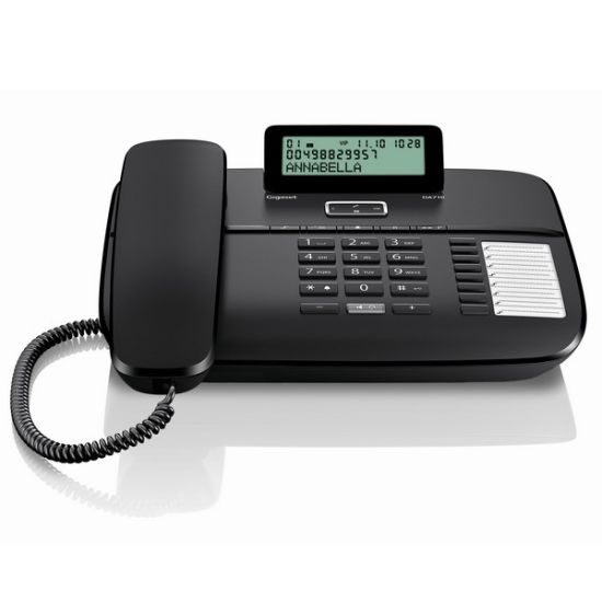 Le Gigaset DA710 est un téléphone filaire avec écran offrant la présentation du numéro. Ce téléphone est doté de 10 touches directes programmables et d'un répertoire de 50 contacts avec fonction VIP (attribution d'une mélodie spécifique par contact).