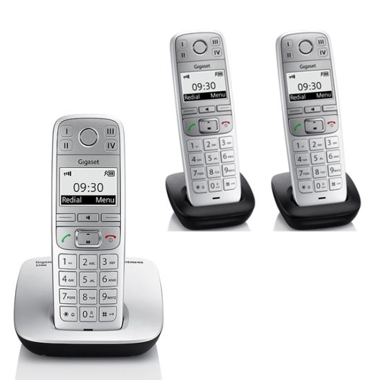 Téléphone sans-fil Gigaset E500 Trio : pack de 3 téléphones sans fil simples d'utilisation, d'une grande lisibilité au son clair et puissant.