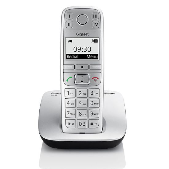 Très facile à utiliser, le téléphone sans fil Gigaset E500 dispose d'un clavier à larges touches pour une numérotation simple, d'un menu intuitif pour une navigation facilitée et d'un écran affichant de grands caractères au contraste accentué pour une grande lisibilité.